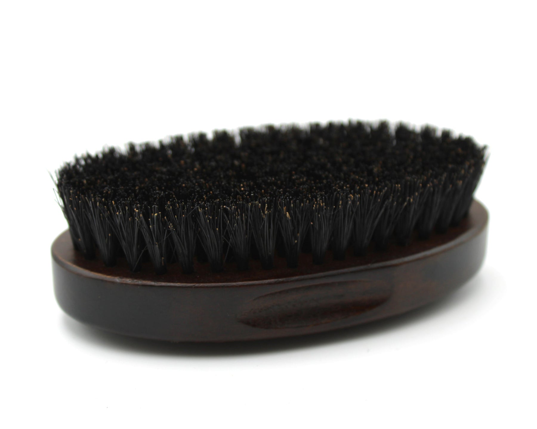 The Dark Beechwood Beard Brush features firm natural black boar bristles that mimic the texture of human hair — effectively spreading oils, taming flyaways, and exfoliating the skin beneath. The smooth, weighted beechwood handle ensures balance and durability, making it ideal for everyday luxury grooming.